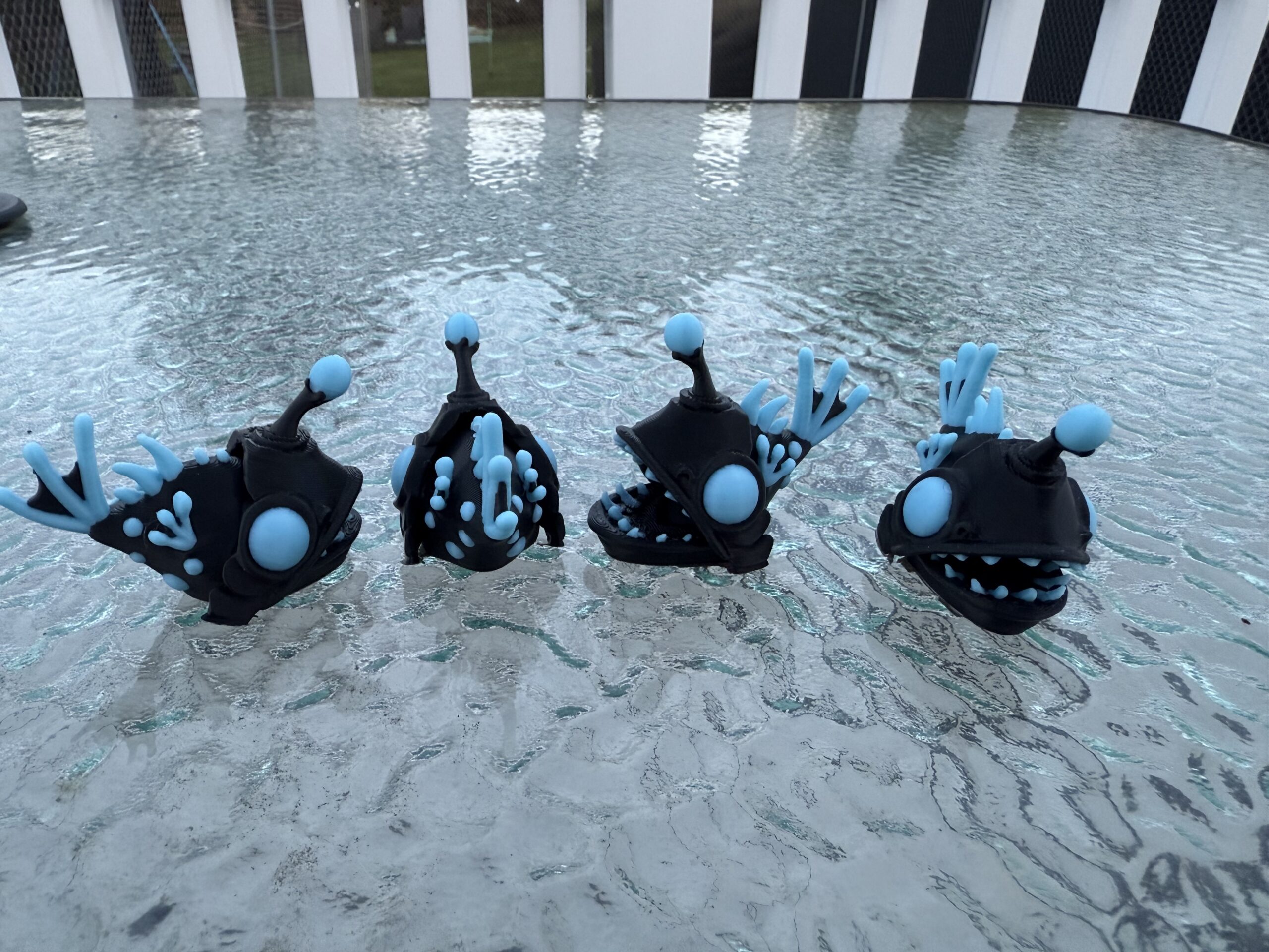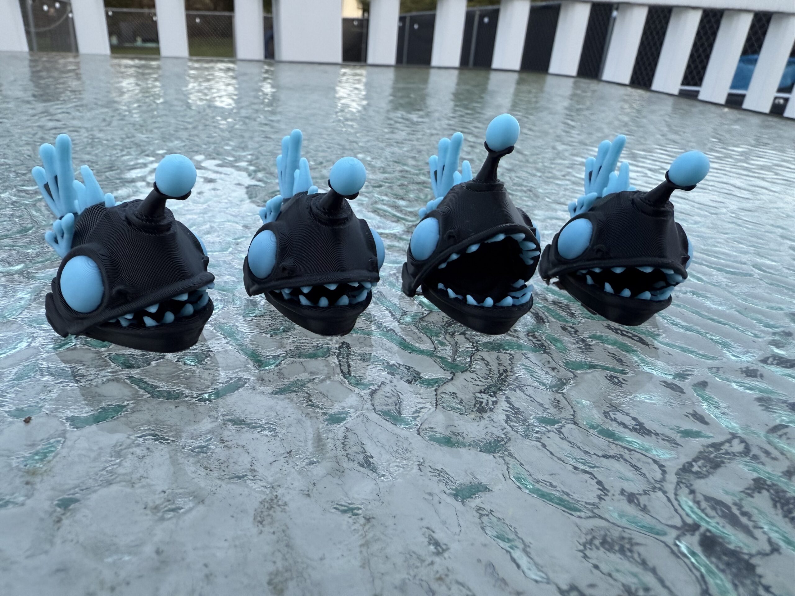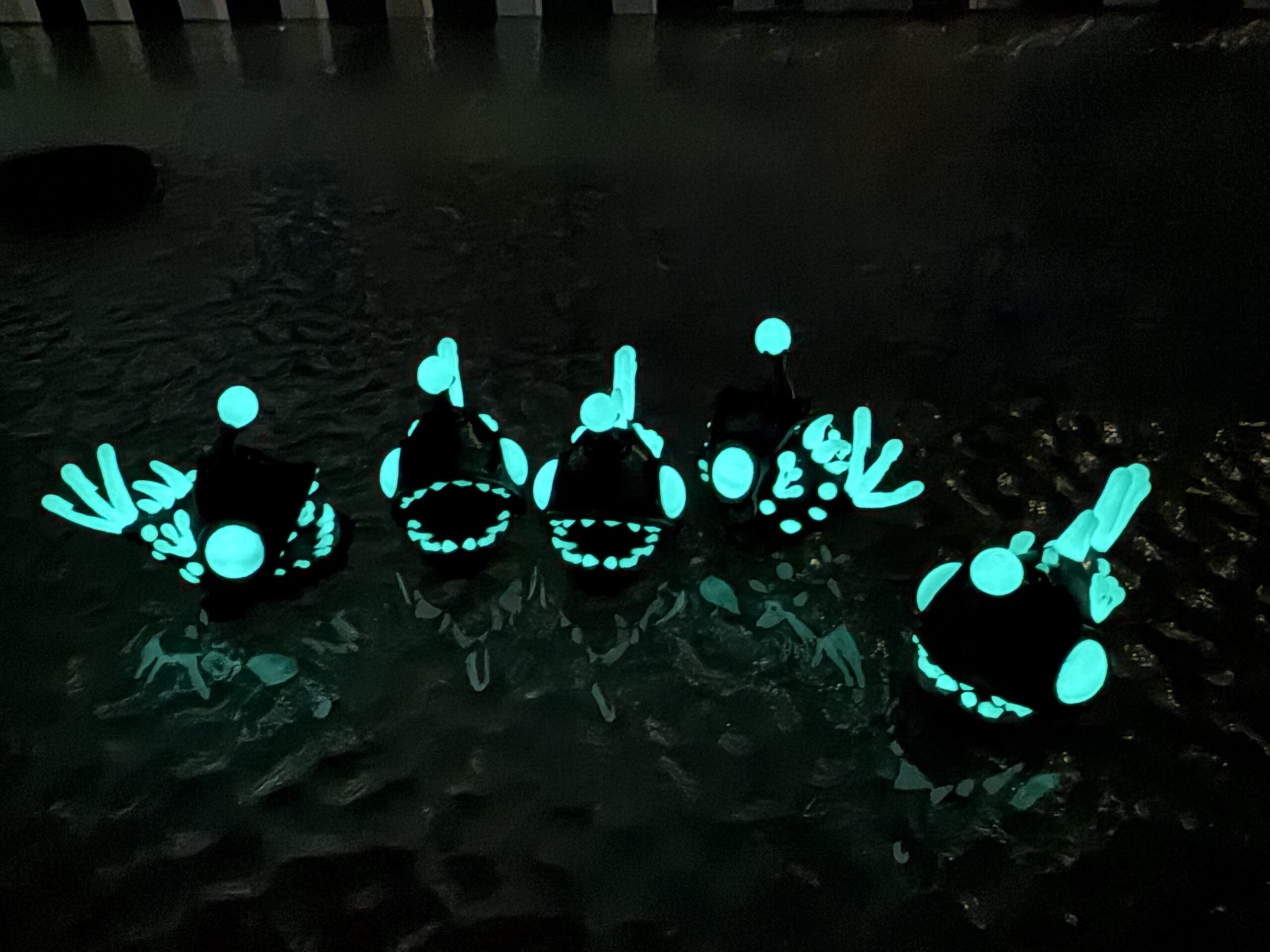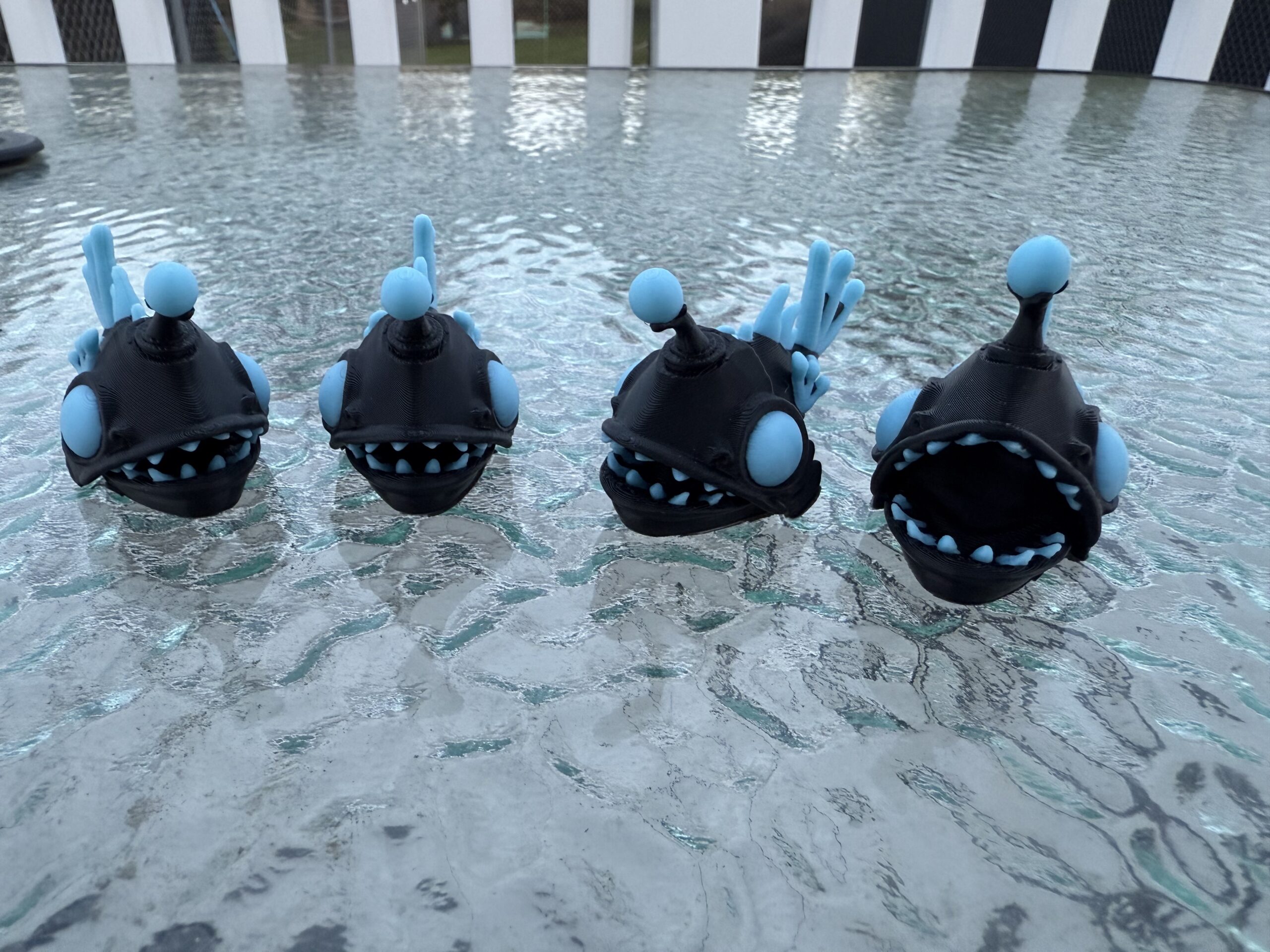 These adorable little angler fish have a surprise, they glow in the dark and their mouths open.