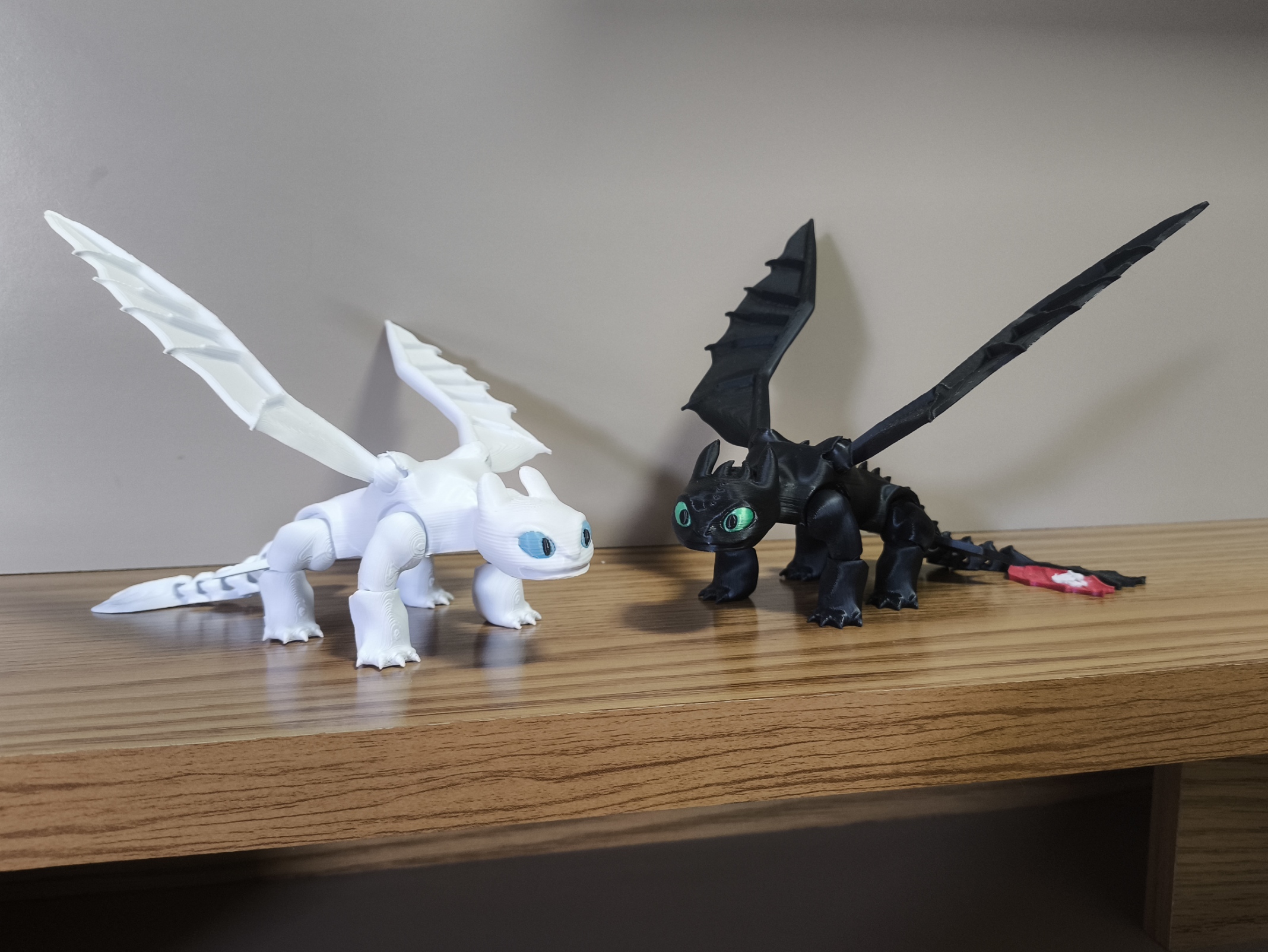 🖨️ Modelo 3D do casal de dragões Banguela (Toothless) e Fúria da Luz (Light Fury) impresso em PLA ecológico, inspirado no filme Como Treinar o Seu Dragão.