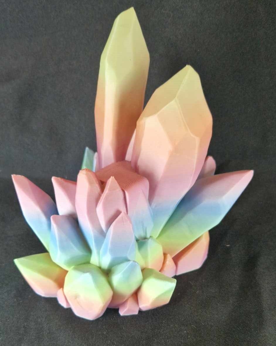 Ce modèle est imprimé avec un filament arc-en-ciel mate qui lui donne un agréable effet pastel.