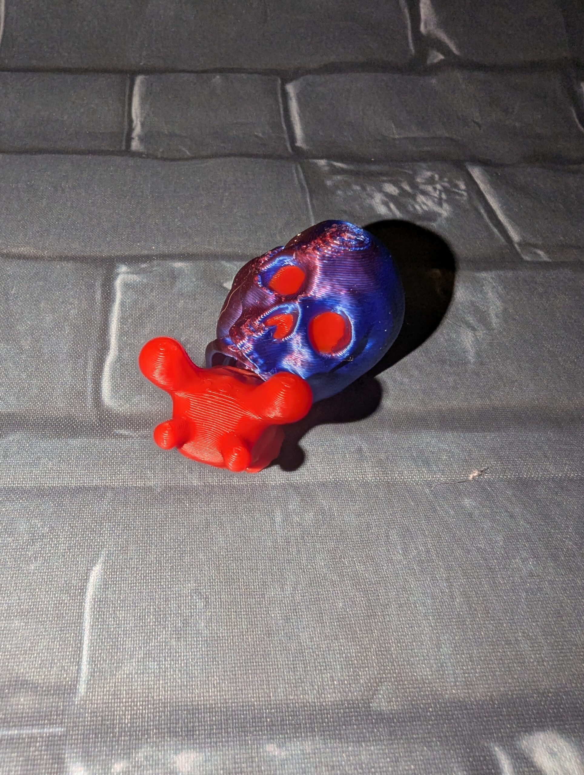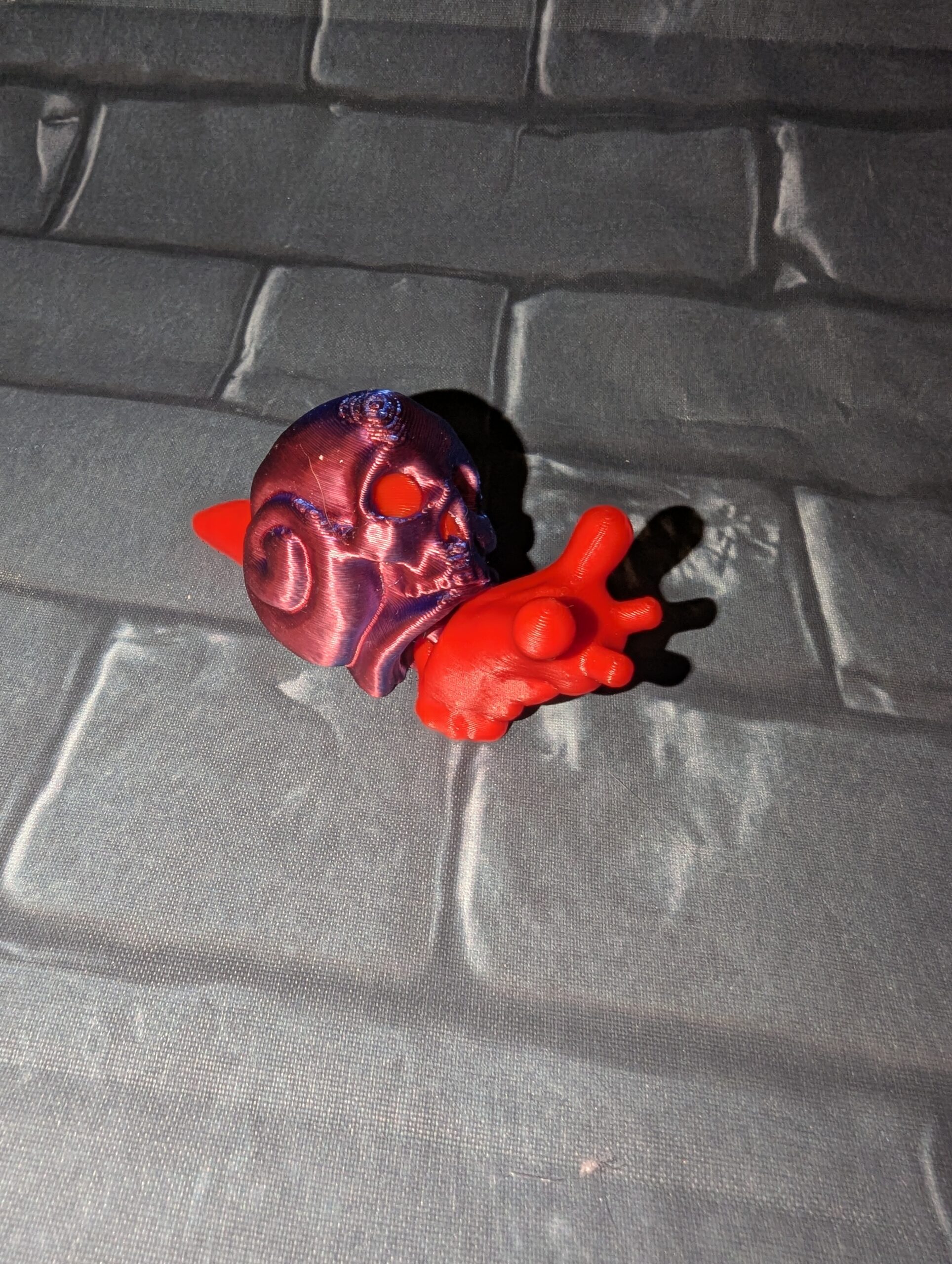 This cursed snail is one of our minis with a red and blue gradient shell