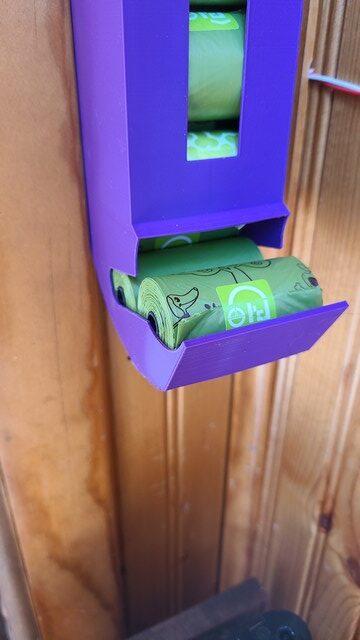 Doggie Poop Bag Dispenser. Mounts on the wall for easy access to poop bag rolls.