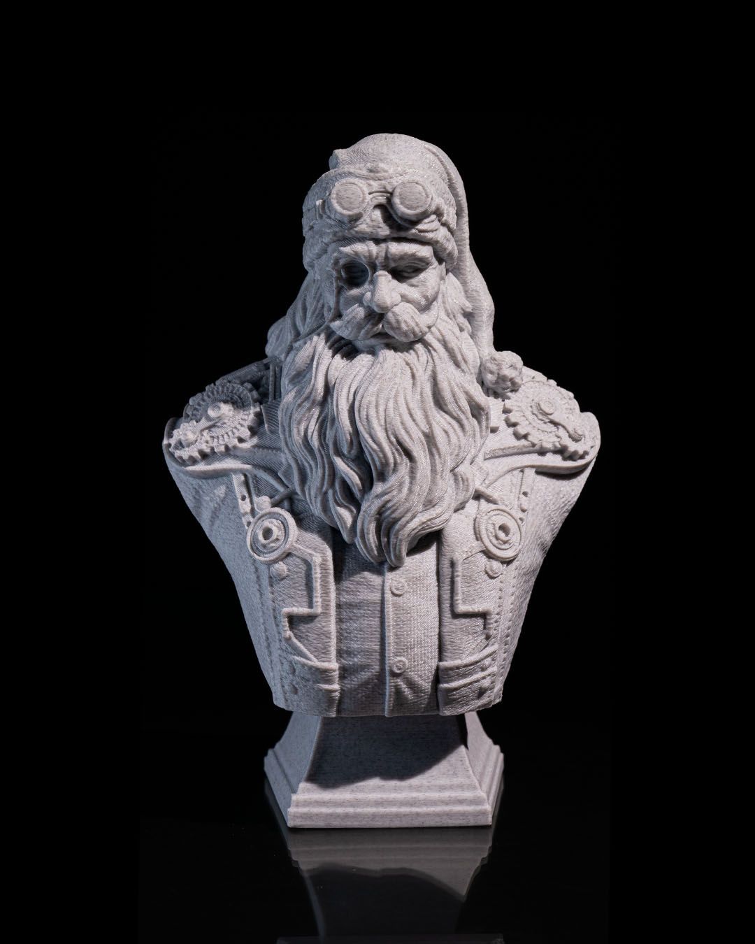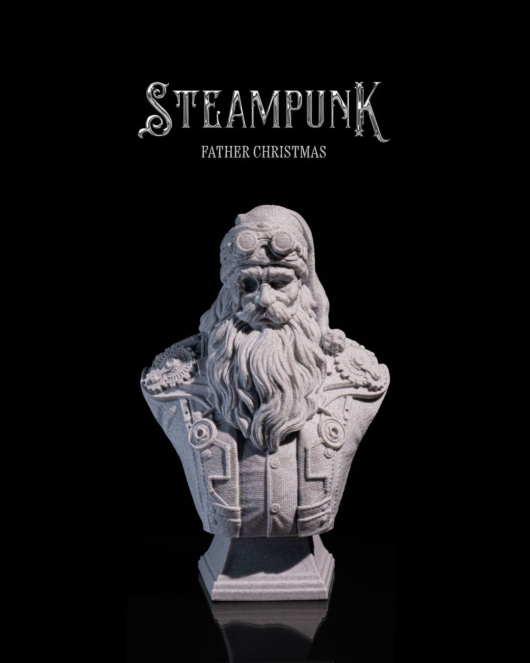 🎩 A Futuristic Twist on a Holiday Classic: Add a touch of steampunk flair to your holiday decor with this unique Father Christmas bust, blending traditional charm with industrial style.