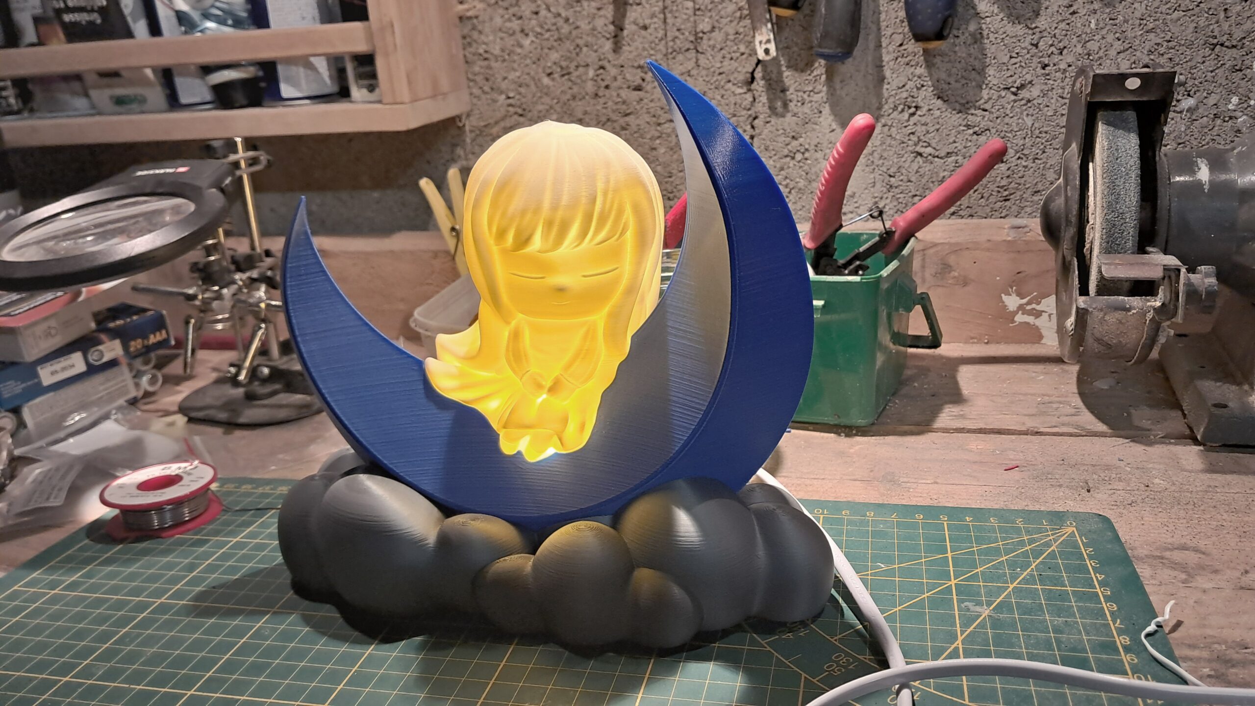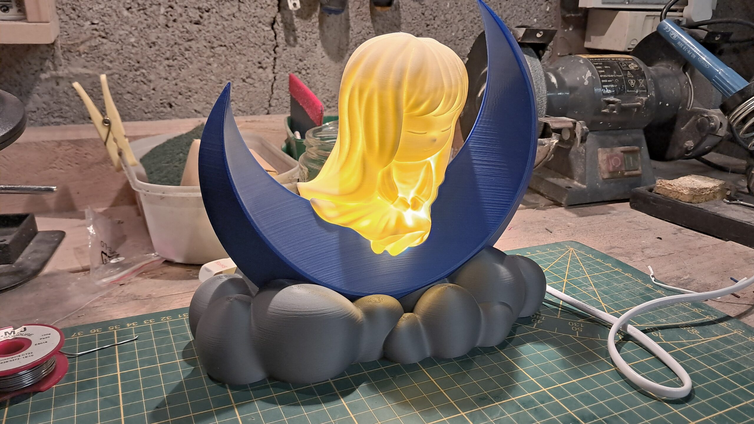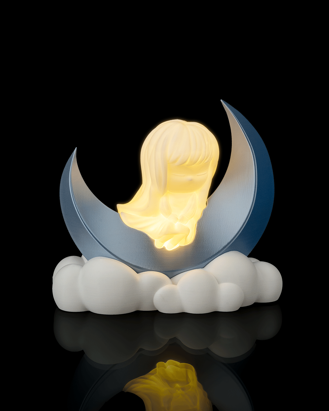Rayonnant de l’intérieur, elle apporte de la douceur dans l’obscurité. Une présence silencieuse, flottant au-dessus, éclairant le chemin vers le sommeil.