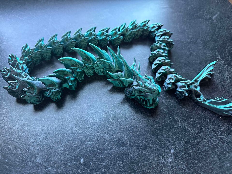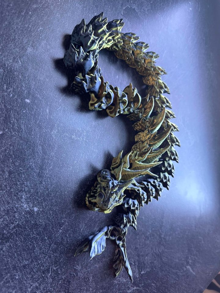 The Ouroboros is a mythological concept that has appeared in many cultures throughout the years, and the Jörmungandr, also known as The Midgard Serpent, is the representation in Norse mythology. It symbolizes the circle of life and death, a giant serpent that is long enough to wrap around the world. Articulated 3D Serpent that will bite on to its own tail. Sprawled out this serpent is 29″ long!