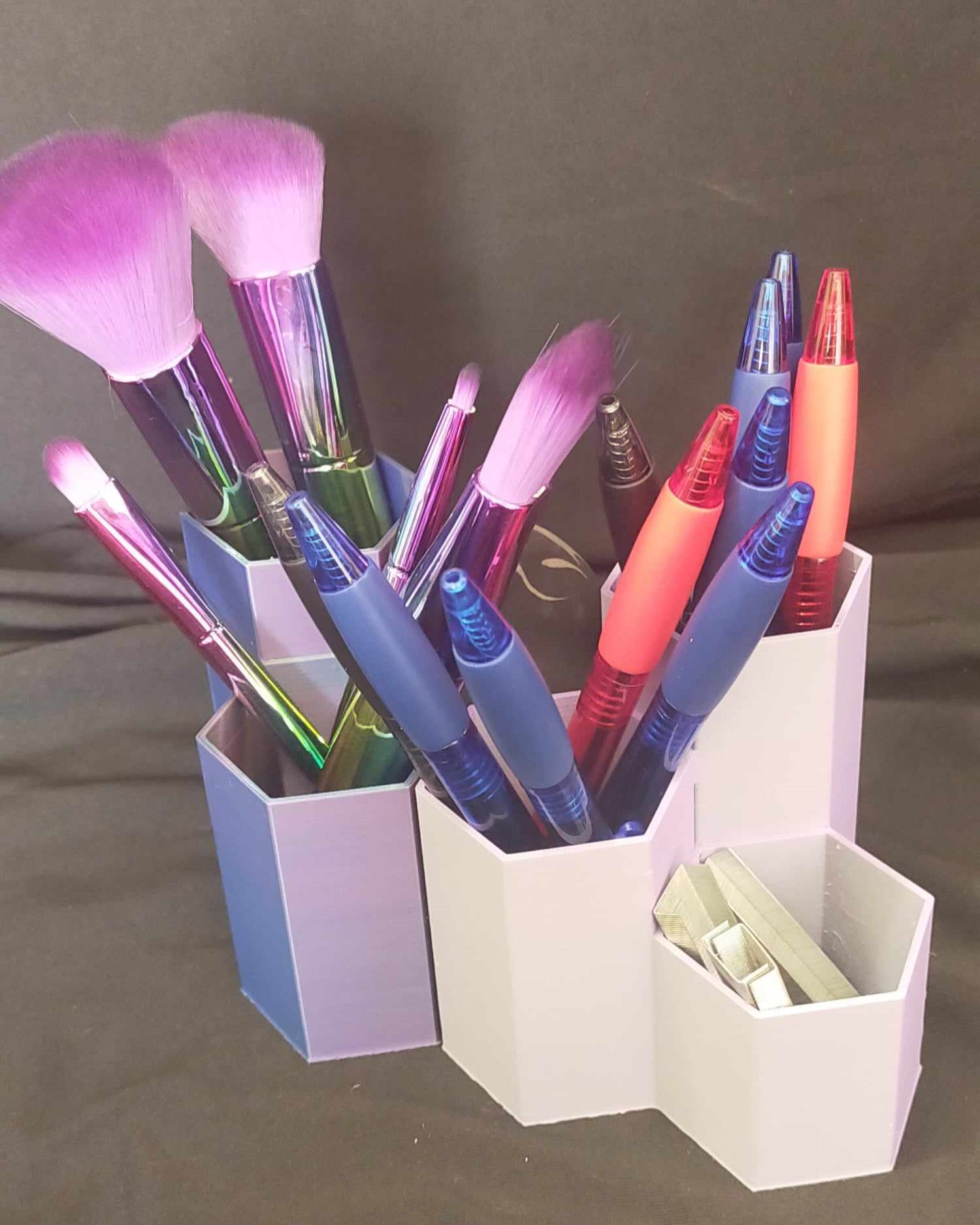 Organisez votre espace avec style grâce à cet organisateur composé de trois hexagones ! Leur forme unique permet de les emboîter de manière simple et ludique, tout en offrant des espaces distincts pour ranger vos accessoires, fournitures ou essentiels sans les mélanger. Parfait pour votre bureau ou votre salle de bain, cet organisateur allie praticité et design géométrique moderne.