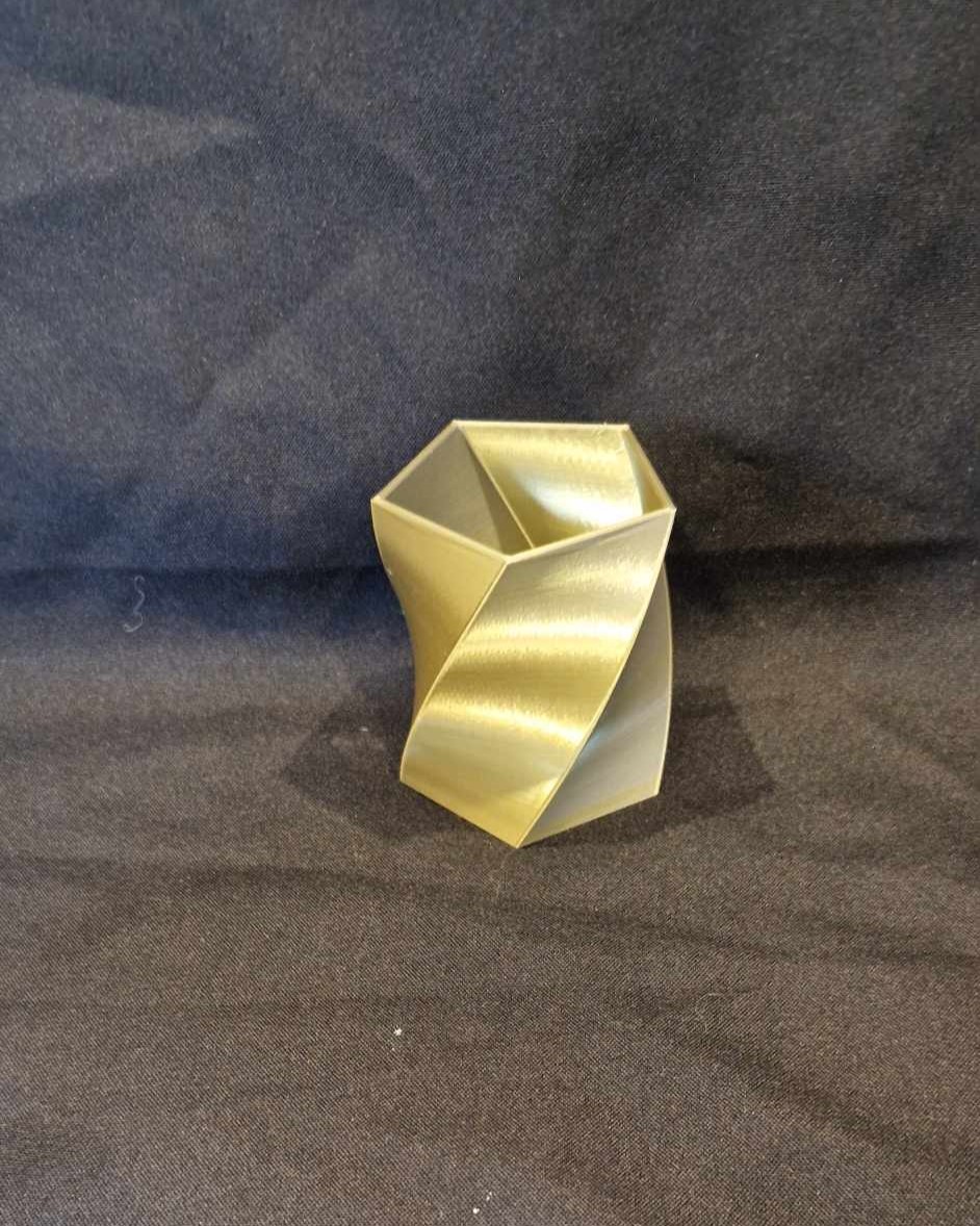 Ce modèle est imprimé avec un filament bicolore qui alterne entre des reflets doré et argenté.