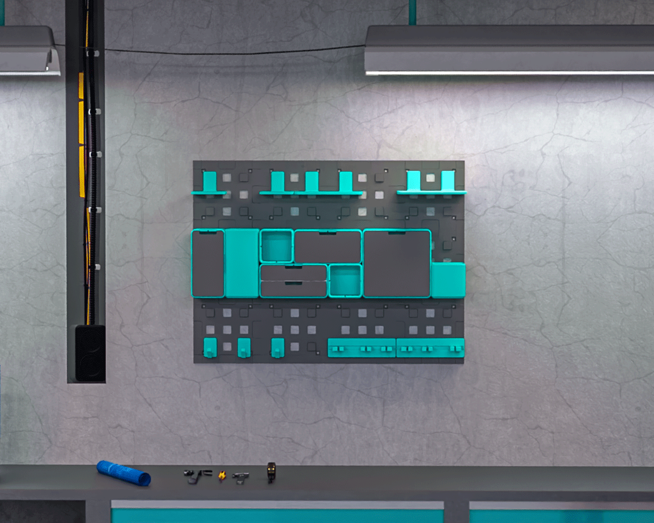 Um impulso vertical para o seu fluxo de trabalho. Monte-o na parede e mantenha suas ferramentas, peças e equipamentos exatamente onde você precisa: fora da mesa, ao alcance e fora do caminho.