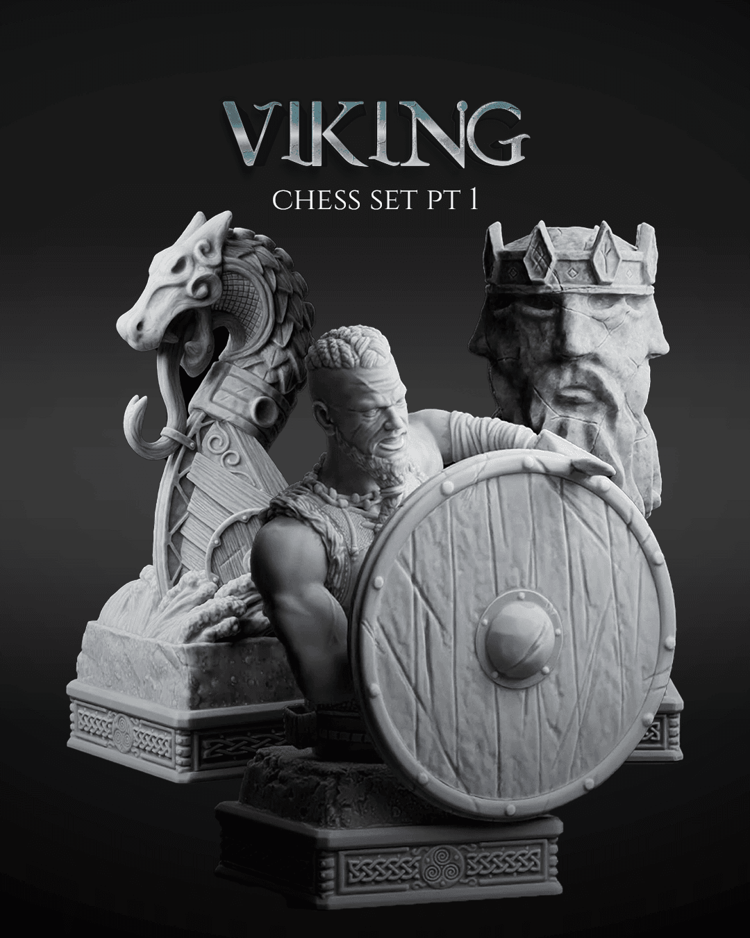 • Viking Longship Rook with intricate carvings • Ornate Celtic-inspired base designs • High-resolution resin 3D printing for maximum detail
