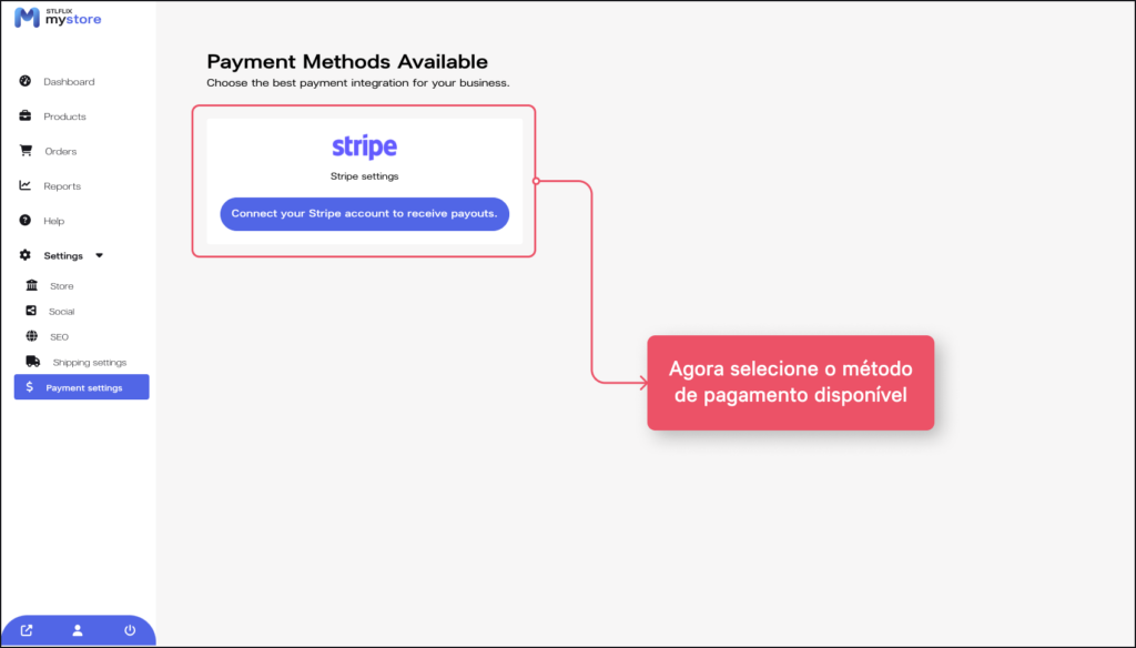 2. Você precisará selecionar o método de pagamento disponível (Aqui usaremos o Stripe)