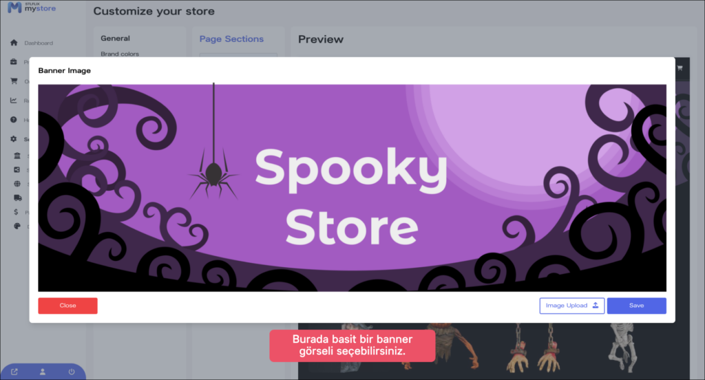 Son olarak, mağazanıza bir banner görseli yükleyin. “Banner Görseli” sekmesine tıklayın ve mağazanızın banner’ı olarak kullanmak istediğiniz görseli seçin.